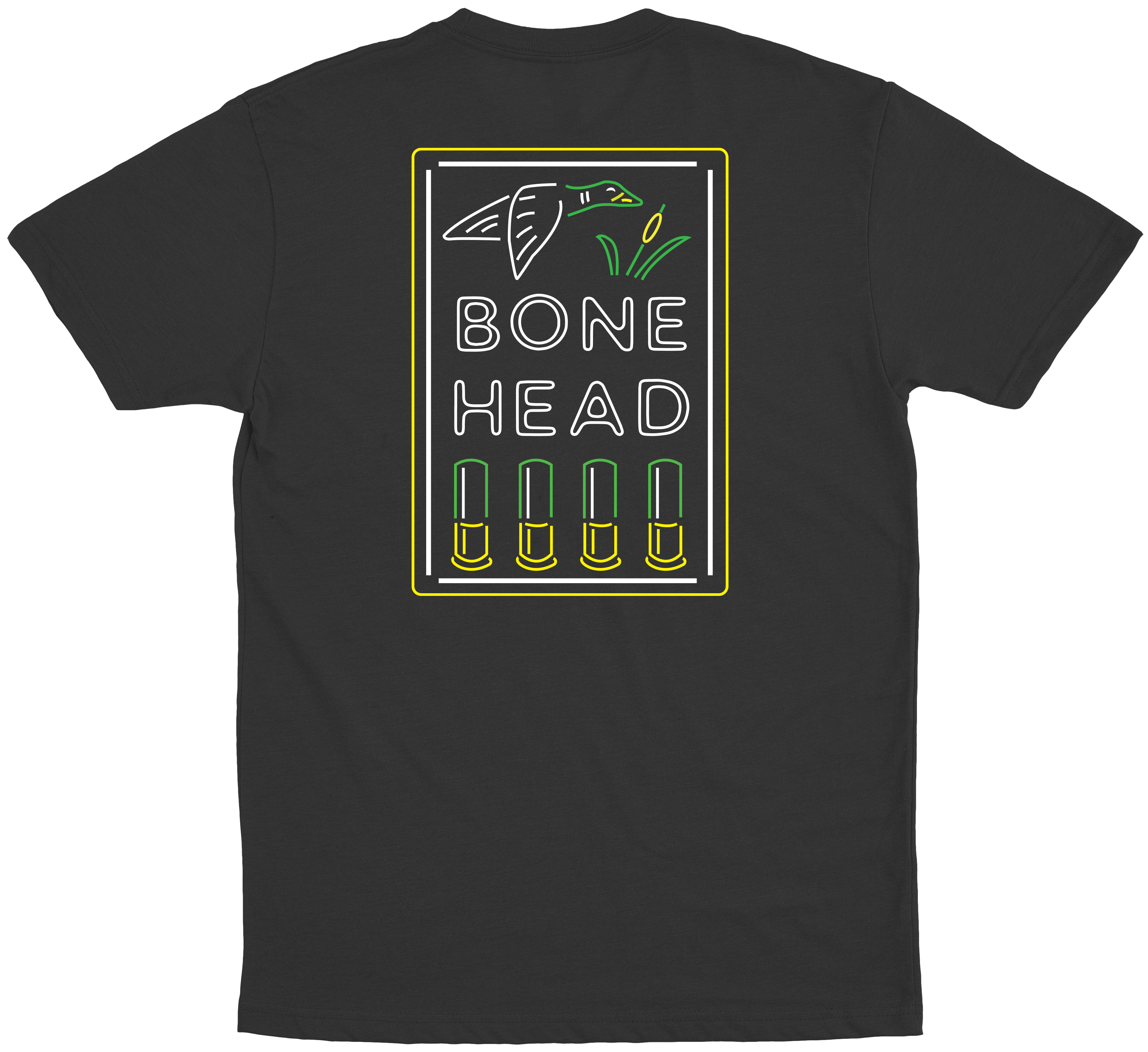 - Exclusive Bone Head Outfitters branded tee designed and printed in the USA