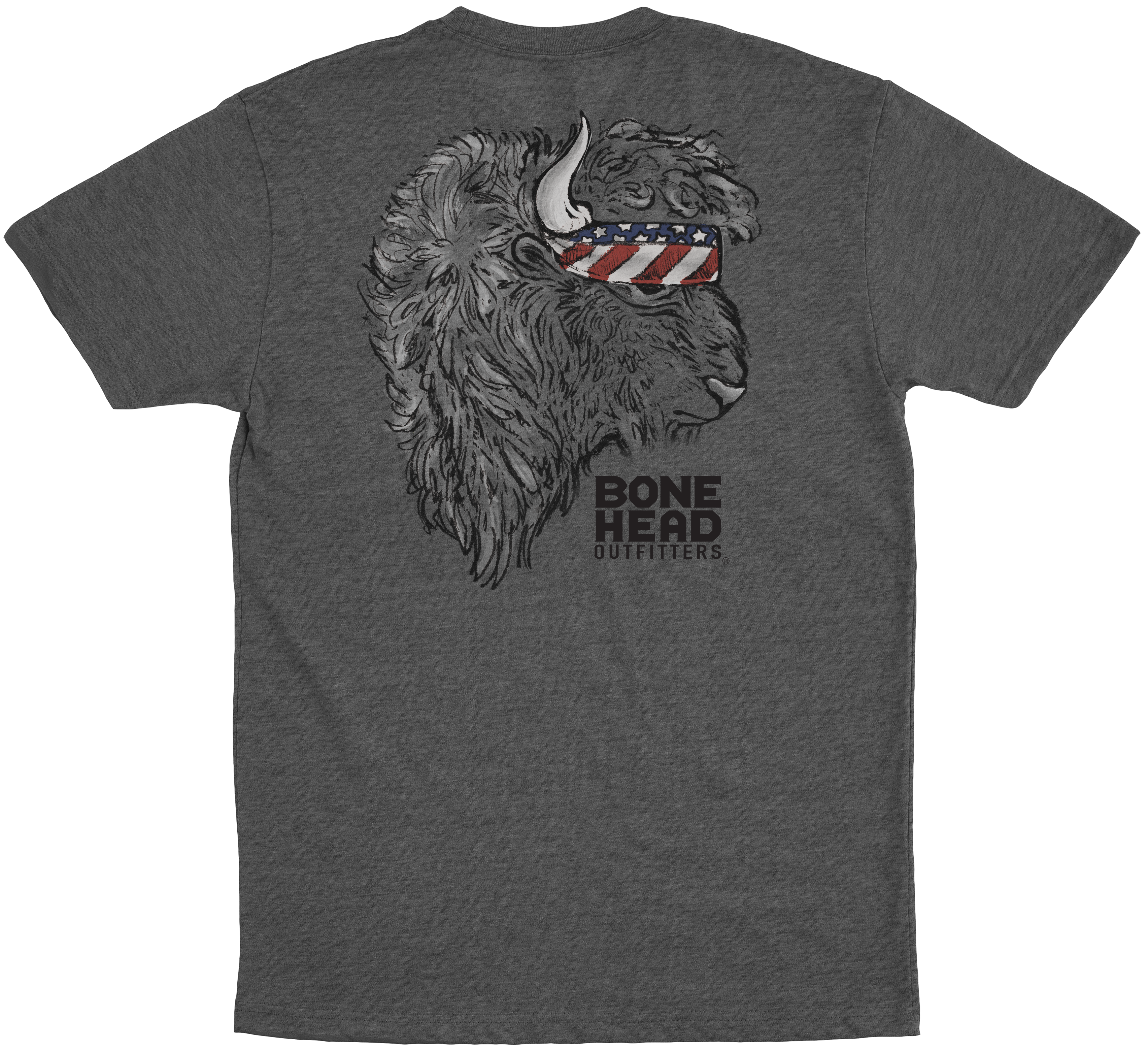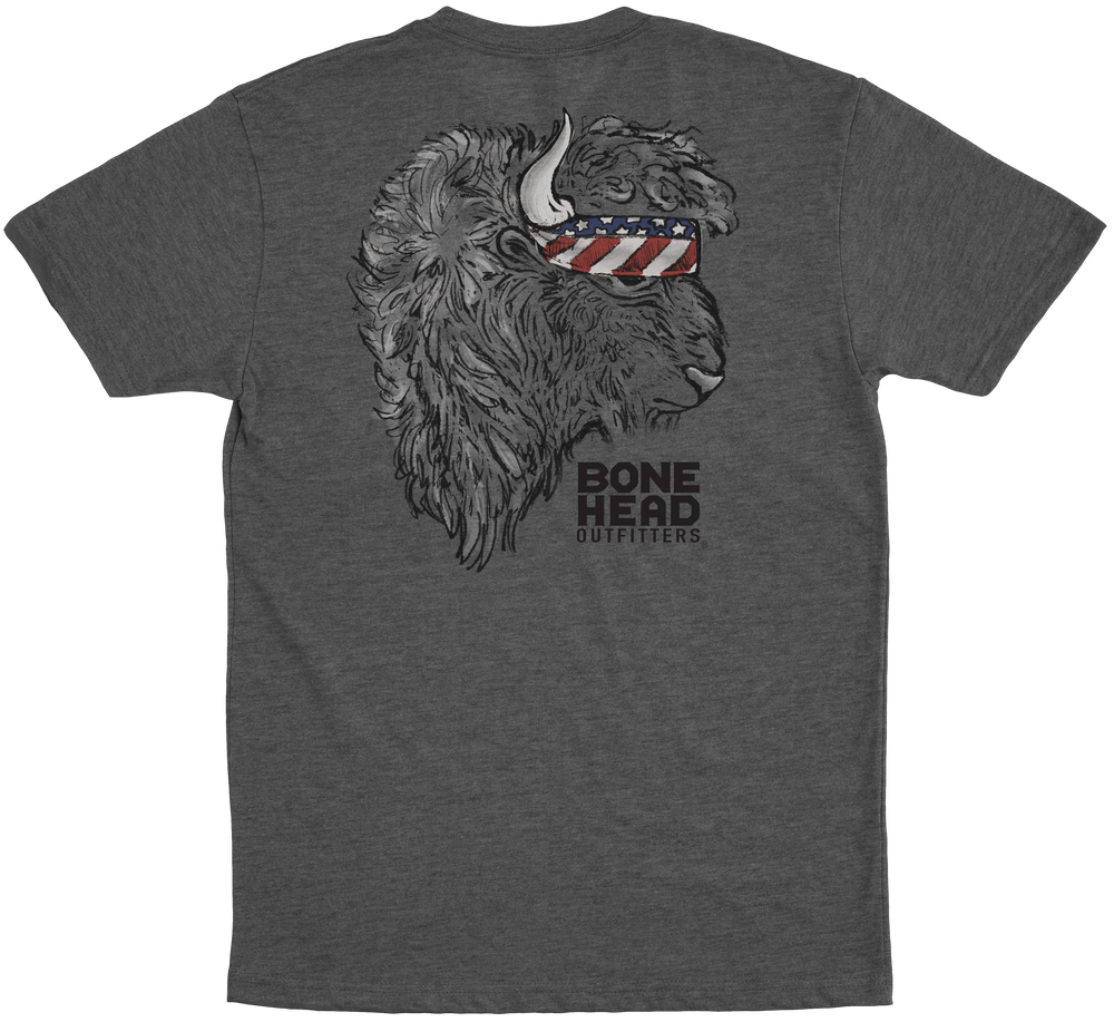 Step into the wild and channel your inner American spirit with the Bone Head Outfitters American Bison tee! This shirt celebrates the strength and resilience of our nation’s iconic bison, with a bold design that combines patriotism and rugged style. Featuring a bison rocking an American flag bandana, this shirt captures the perfect blend of strength, freedom, and a hint of attitude. Made from a comfortable 50/50 blend of soft-spun cotton and polyester, this mid-weight tee is preshrunk to maintain its fit and soft enough to keep you cozy all day.